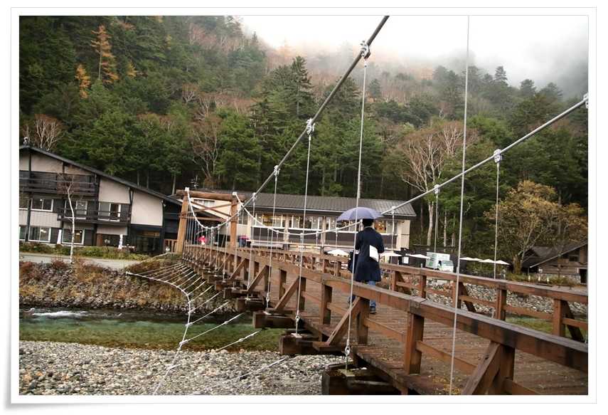 河童橋 を渡った対岸から橋の上を