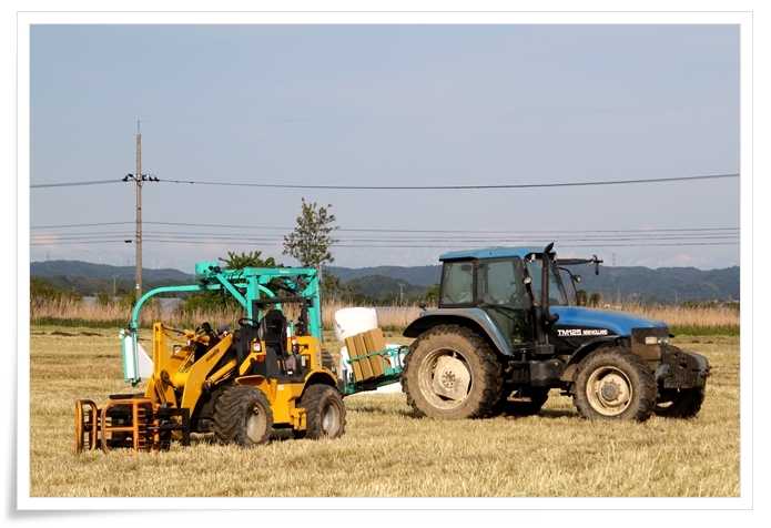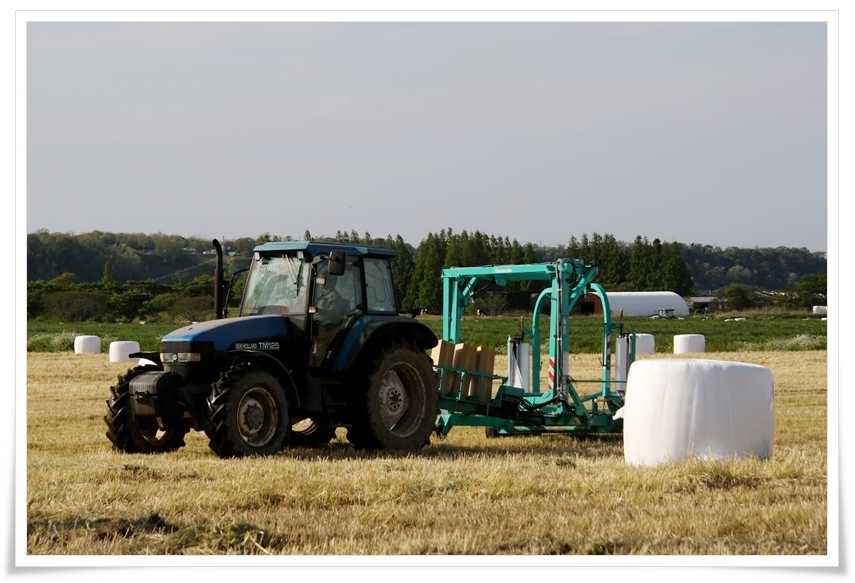 牧草を刈り取ったり、集めて牧草ロールにしたりする作業は見ていても飽きません