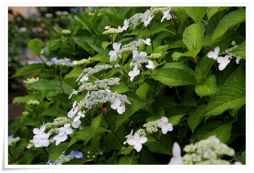 手前の方のこの辺りのアジサイは名札が付けられていないアジサイたちです