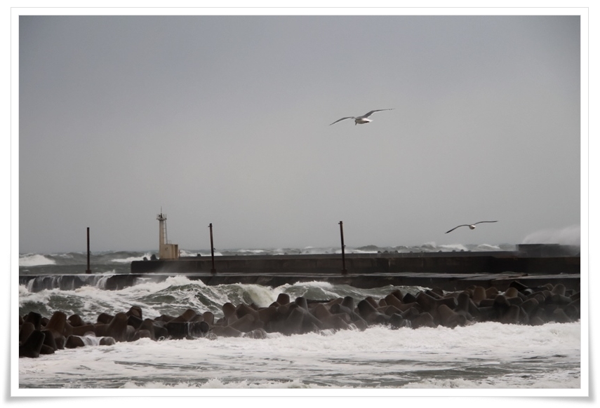 こういう海が荒れた日は ​カモメ​ が飛んでいる事が有ります