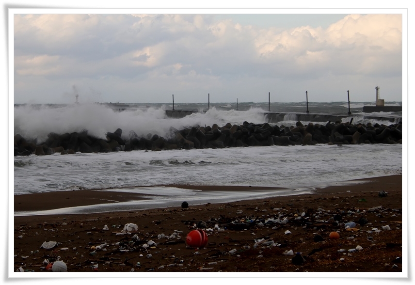 浪消し用のテトラポットが設置されていても海岸にはこんなにたくさんのゴミが打ち上げられています