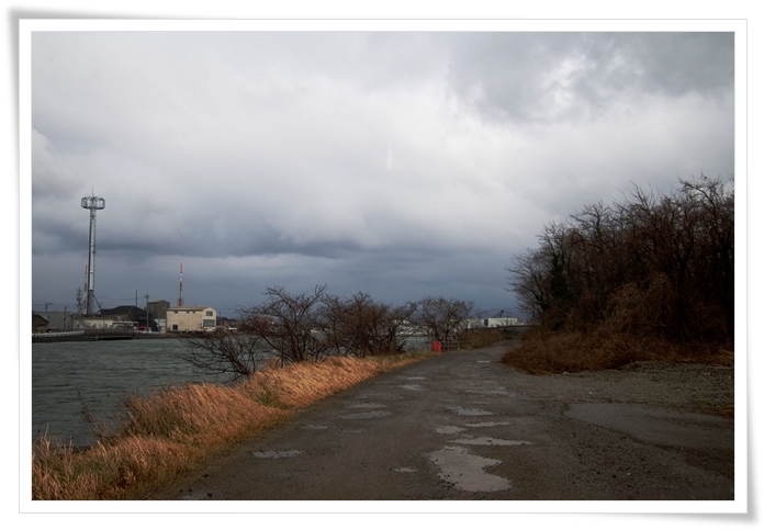防波堤の上に並んだ電柱は、防波堤の先端の灯台のへ電気を送る為に有るんだろうけど