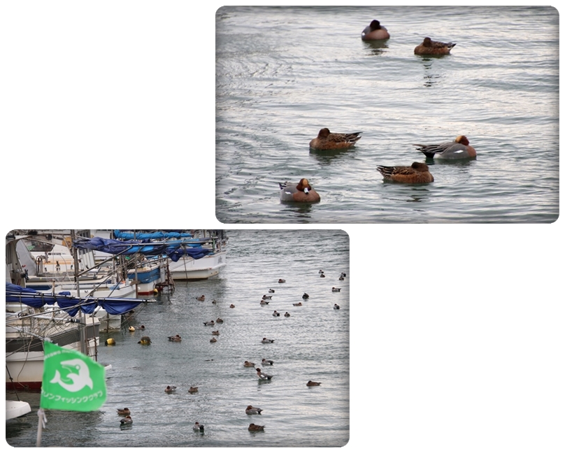 金石港 まで戻って来ると ​ヒドリガモ​ がのんびりと浮き寝していました