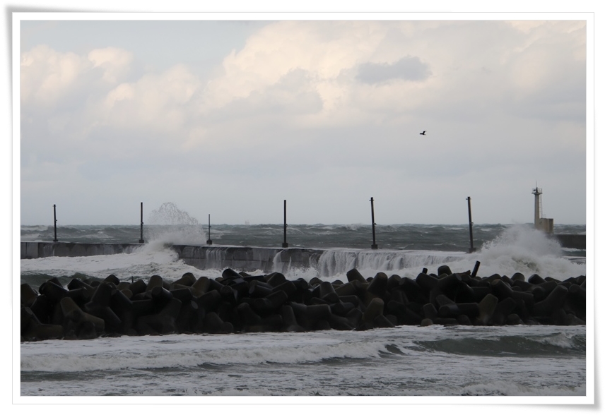 防波堤付近は時々大きな波が砕けて大きな水しぶきが上がります
