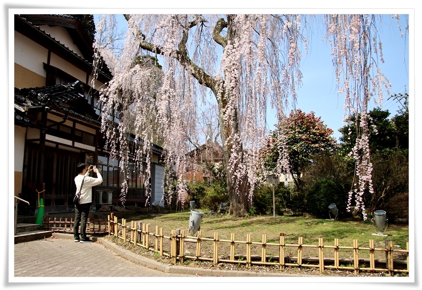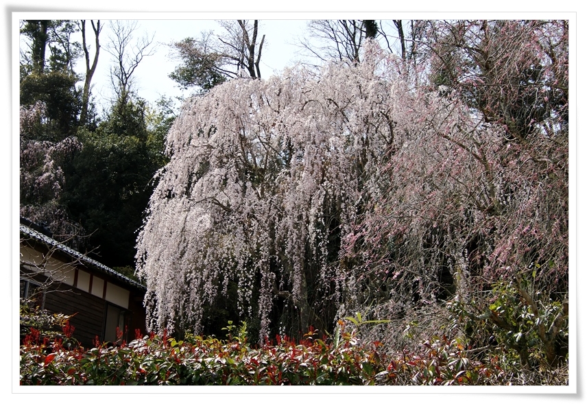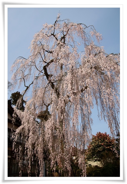 敷地の外へ出て見ると別の大きな枝垂桜も花を咲かせていました