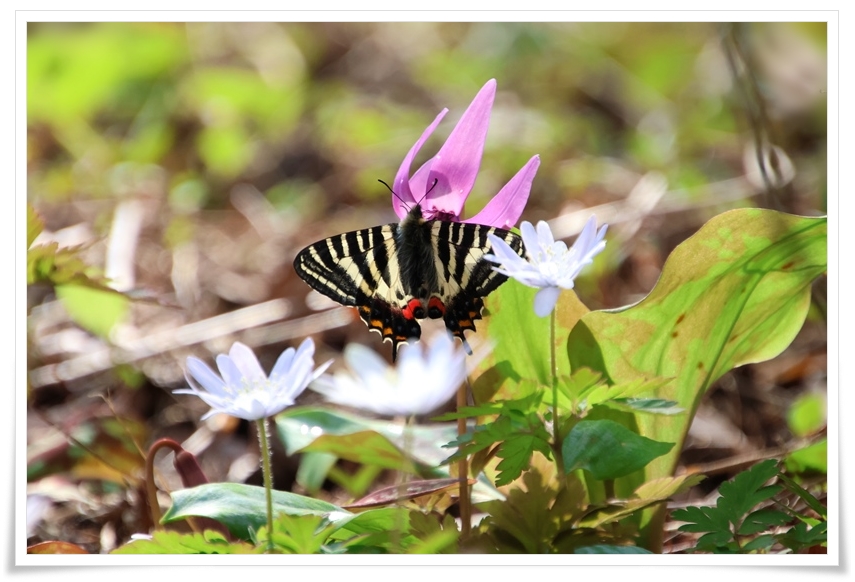 ここにも ギフチョウ が飛んできて カタクリ で吸蜜する姿を見る事が出来ました