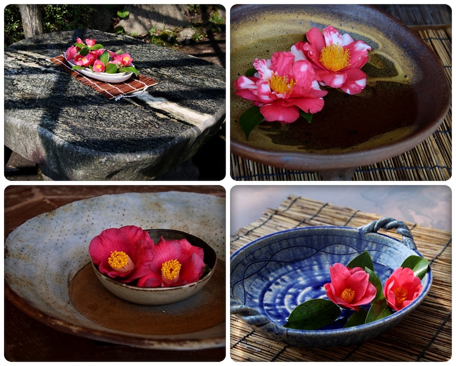敷地のあちらこちらに置かれているテーブルにはたくさんの椿の花が飾られていました