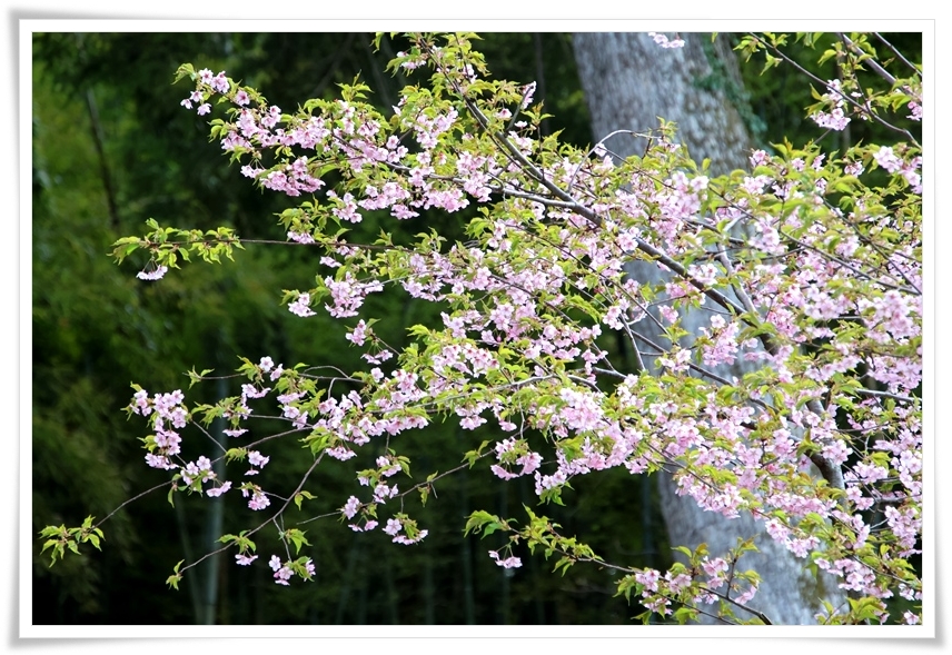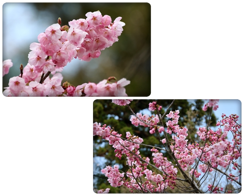 こっちは花の終わり際で葉っぱが出ているので ​河津桜​ かな・・・・・・・・