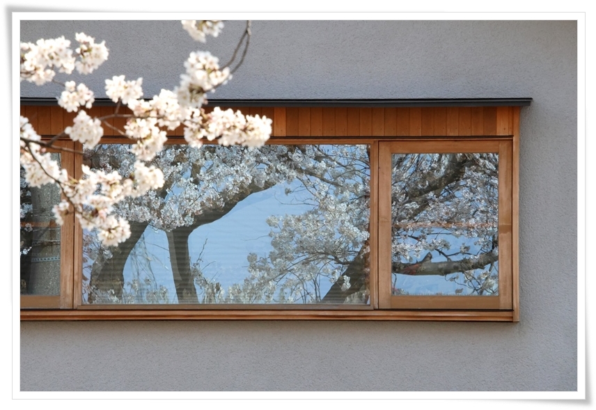 土手沿いに並ぶお家の窓に桜が写り込んで凄く素敵な眺めでした