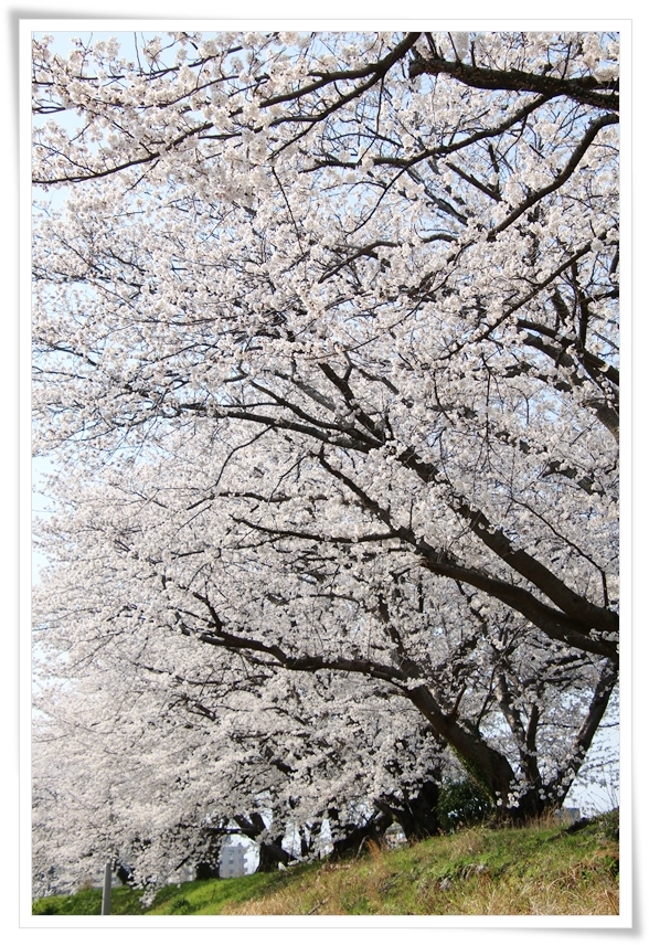 戻る時は土手を下りて下から桜を見上げるようにして歩きました