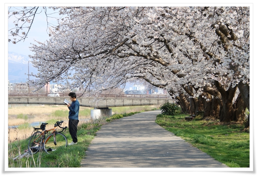 中には桜の下に自転車を停めて読書をしている人もいたよ