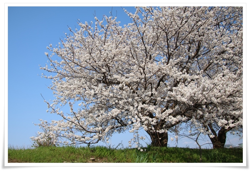 桜が植えられているのは秋にコスモスが植えられている所より少しだけ上流側になります