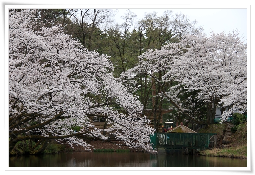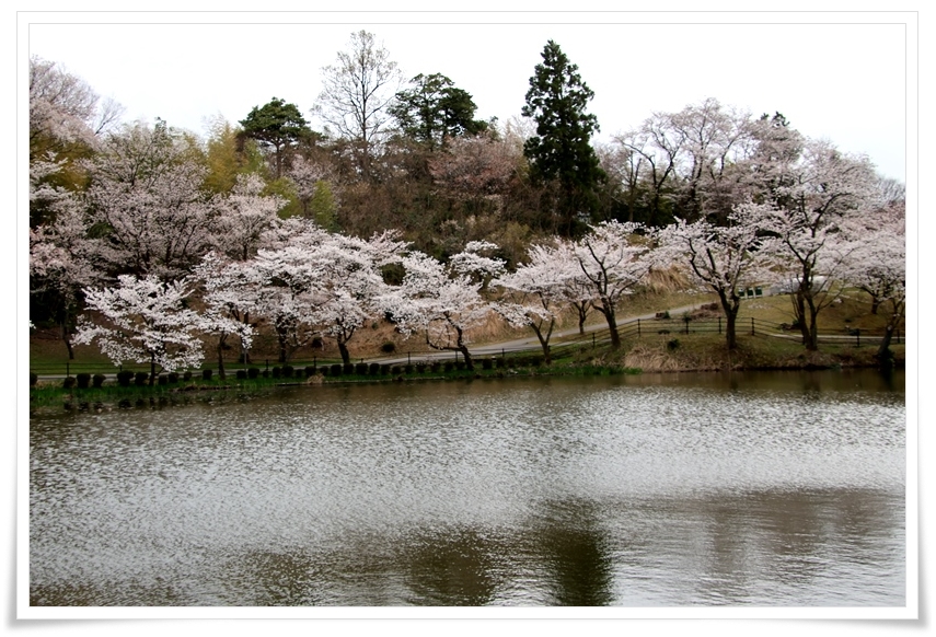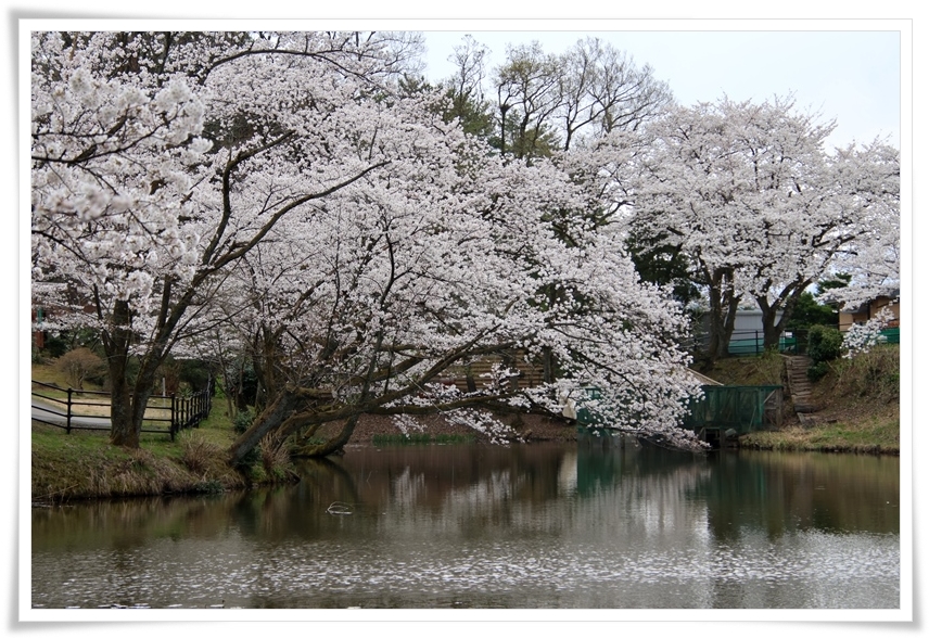 こちら側の畔には池の水面へと大きく枝を伸ばした桜が有って見応えが有ります