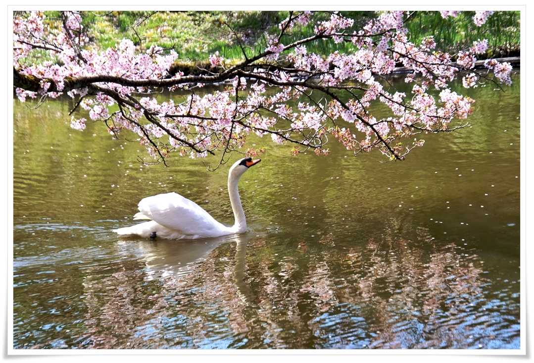 この池に長い間暮らしていた コブハクチョウのコロちゃん です