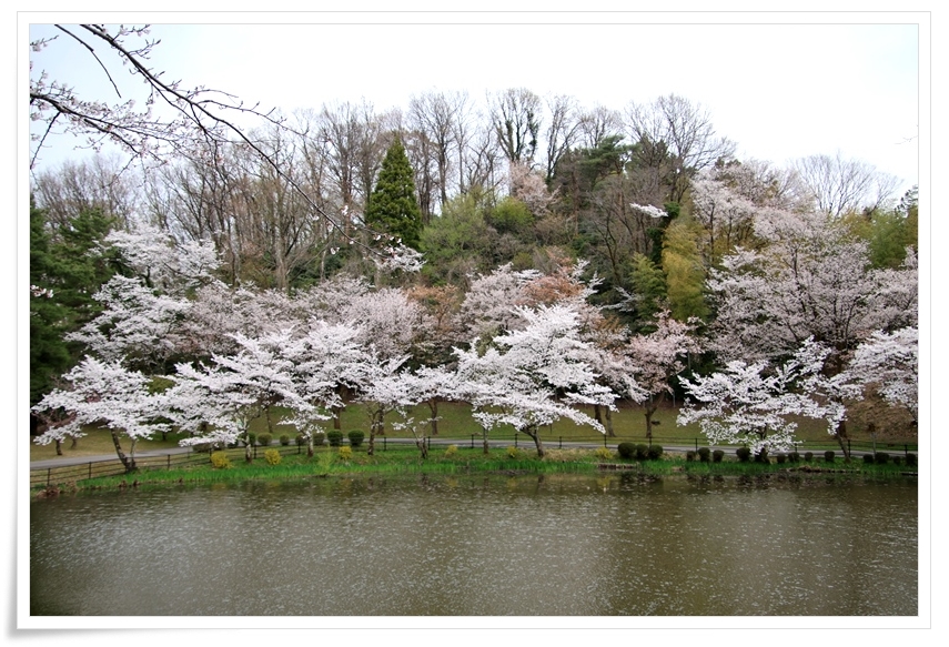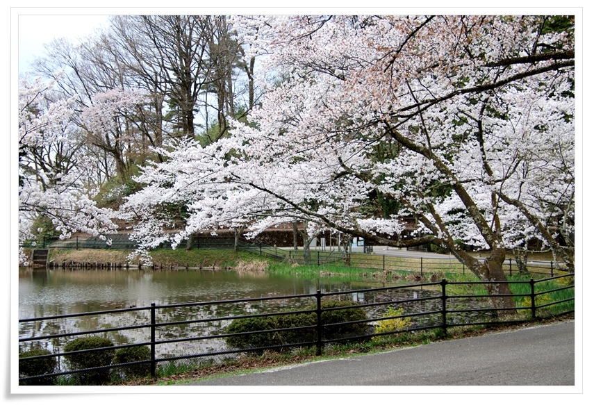 池の周りには ​ソメイヨシノ​ がずらりと植えられています