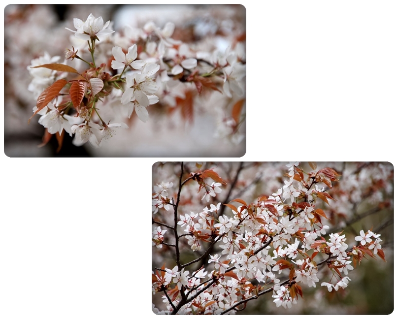 赤い葉っぱが花と一緒に出ていて、花びらもちょっと細いかな