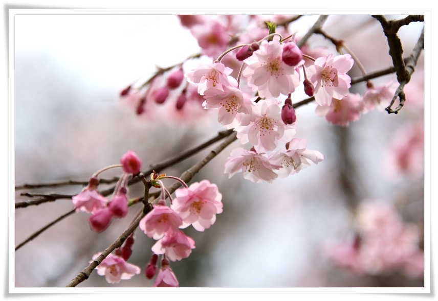 ソメイヨシノと比べると色が濃い枝垂桜は人気が有ります