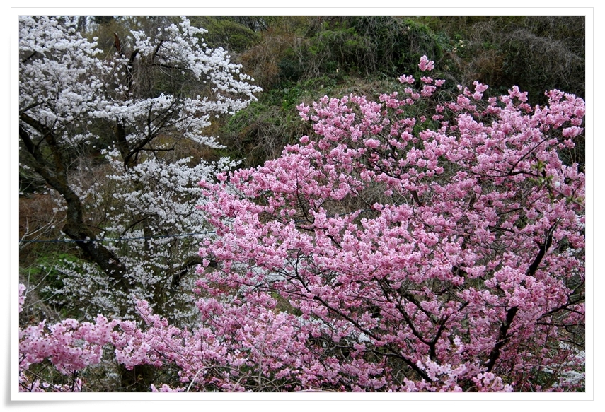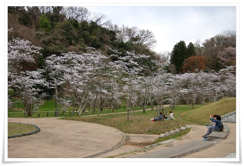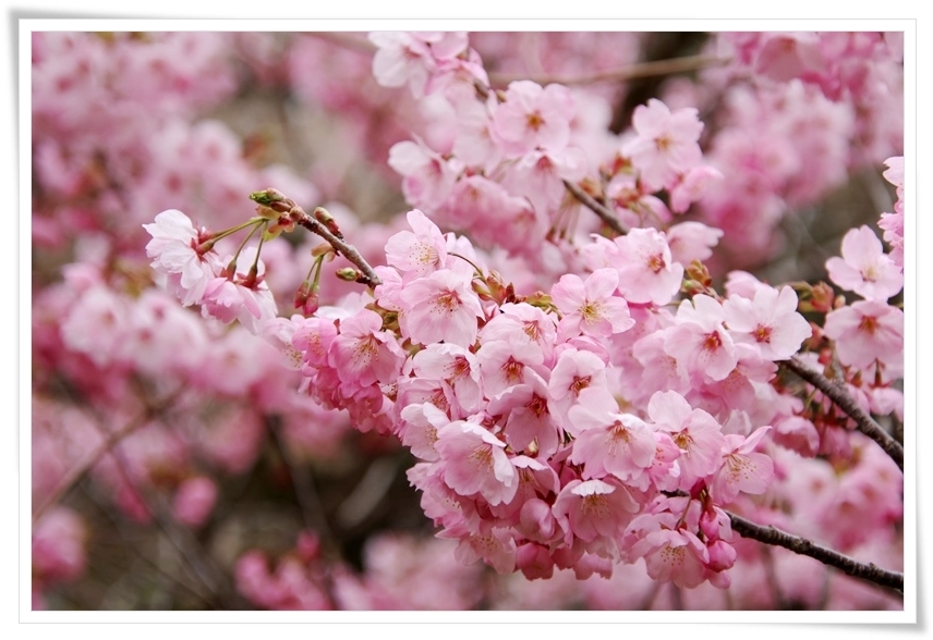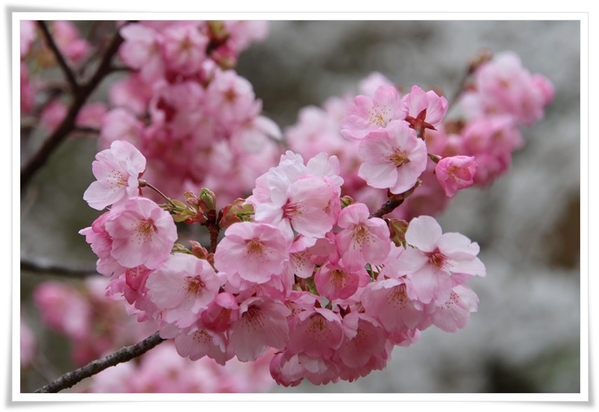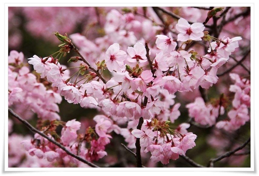 公園の一番奥まで行くと、色が濃い桜が植えらえています