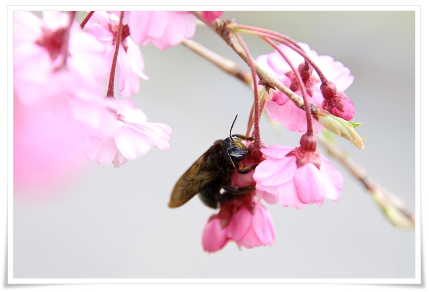 体が真っ黒な ​タイワンタケクマバチ​ が枝垂桜にしがみついてました