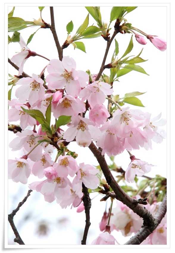 花の残った桜の枝には葉っぱも出始めています