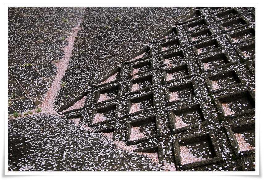 散った花びらがそれぞれの面に違う表情を見せてくれています