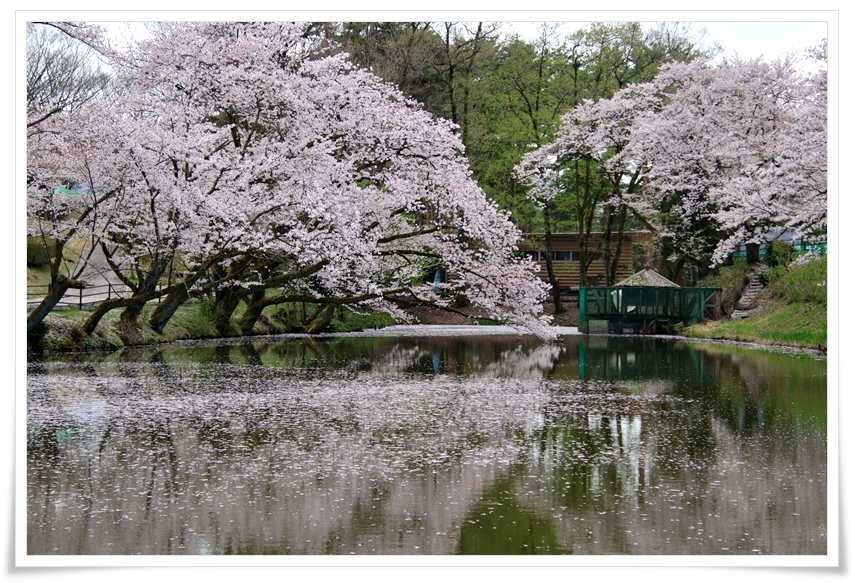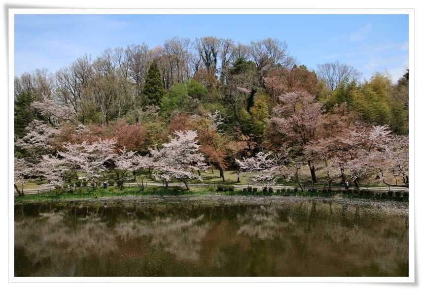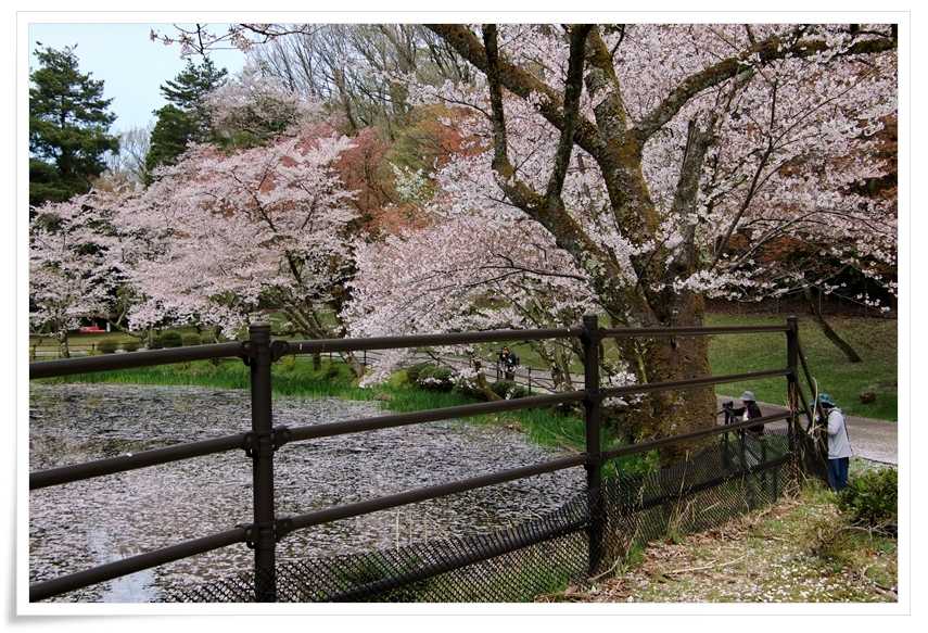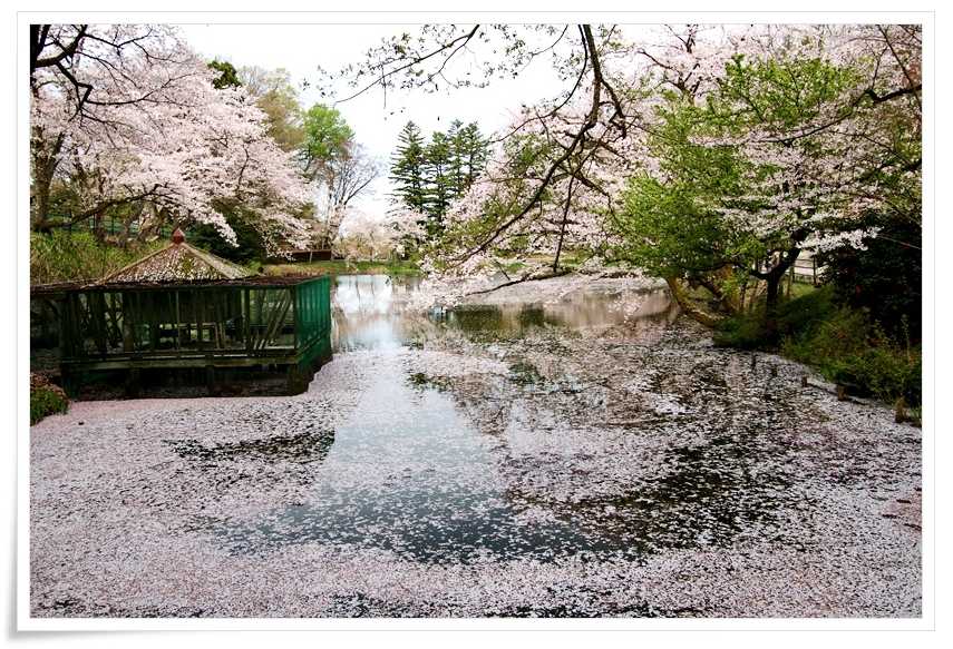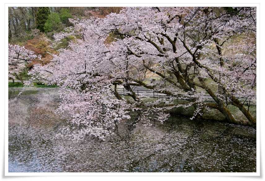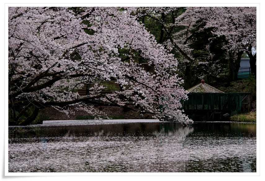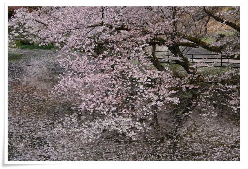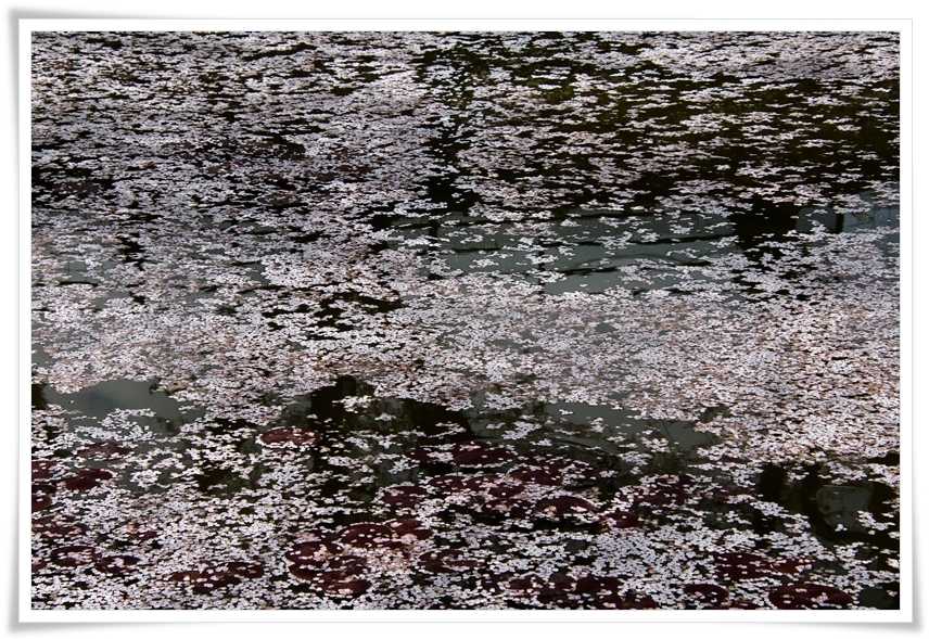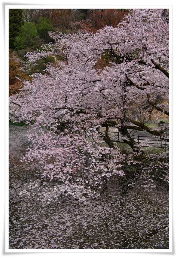 この辺りでも池の水面にはたくさんの花びらが浮いています