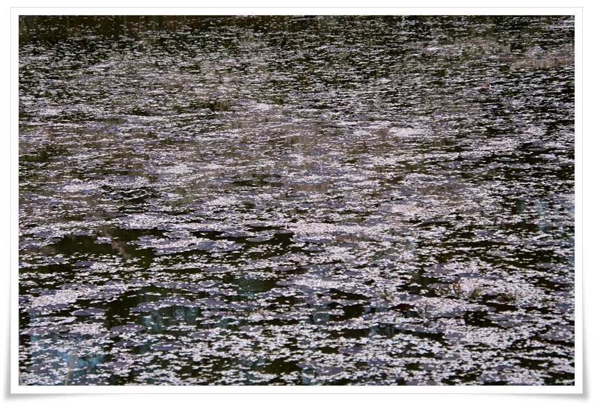 全体がピンク色の埋め尽くされるより、少し水面に空いたところが有る方がいい感じかな