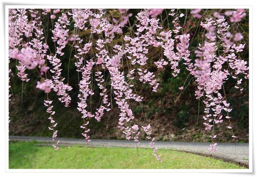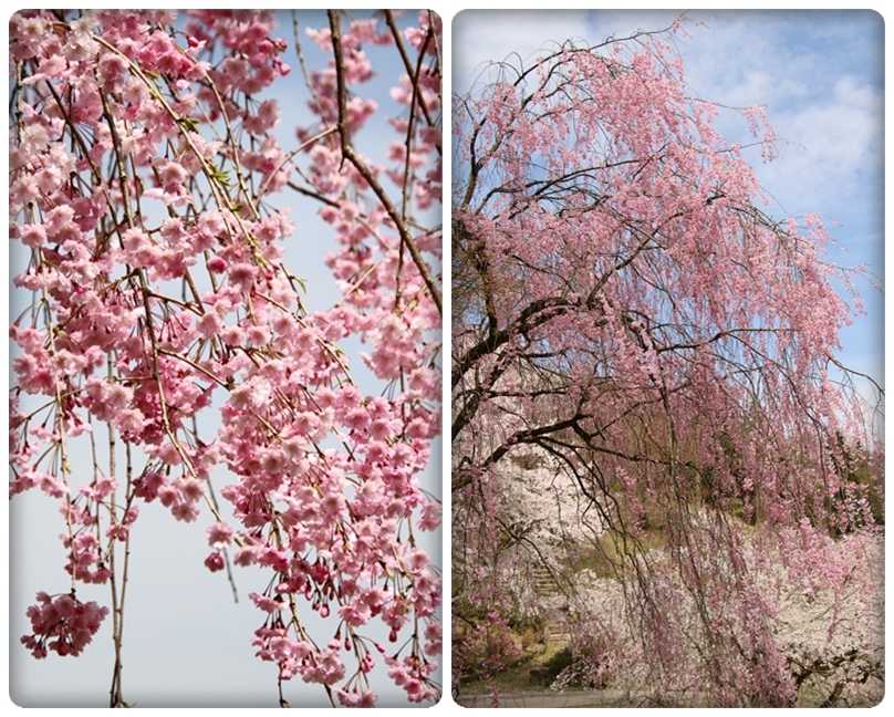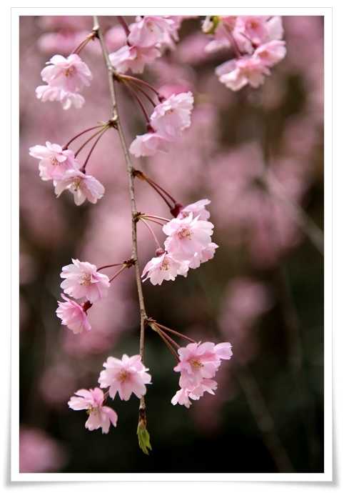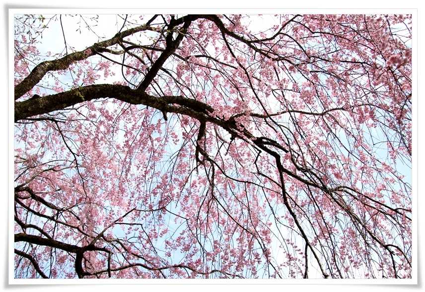 前回はまだ蕾も少し残っていた 一重の紅枝垂れも満開
