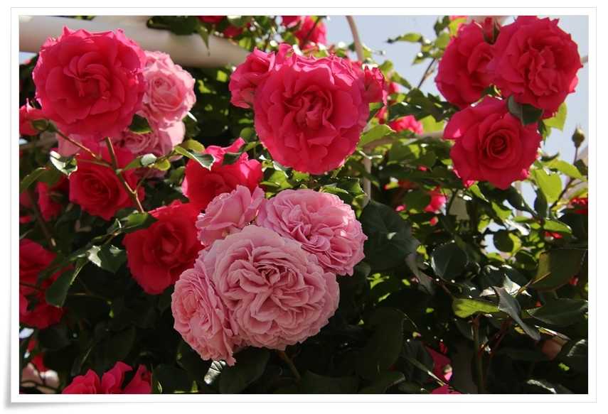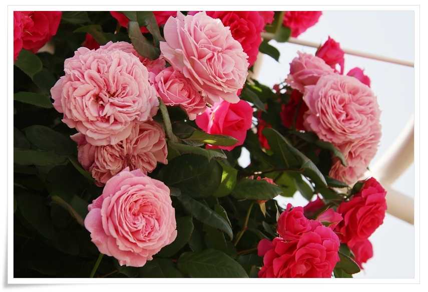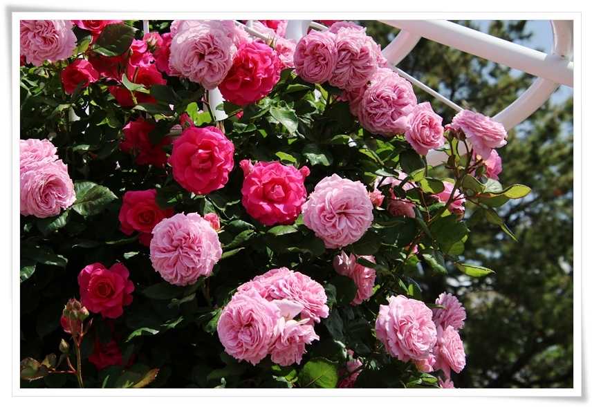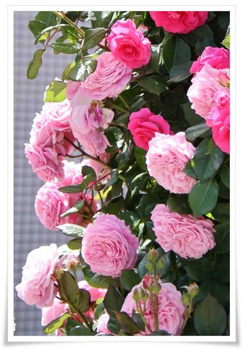 ここには3種類のバラが誘引されています
