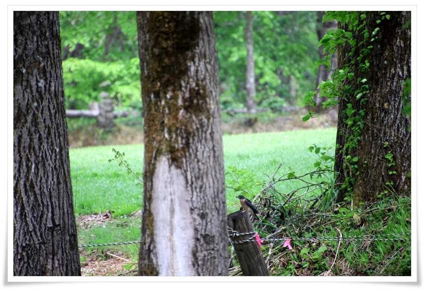 遠くから鳴き声が聞こえてきて、切り株のところに飛んできたのを見つけて