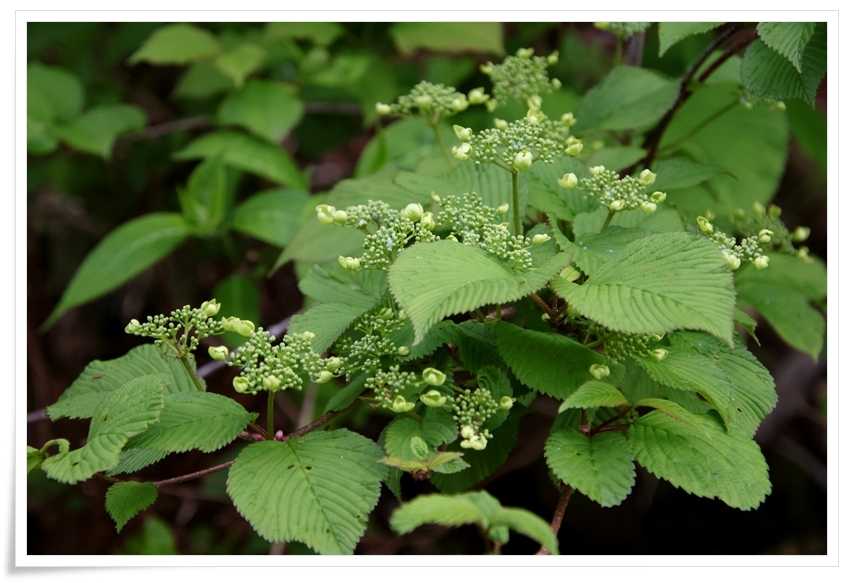 ようやく外側の装飾花が開き始めたばかりの状態です