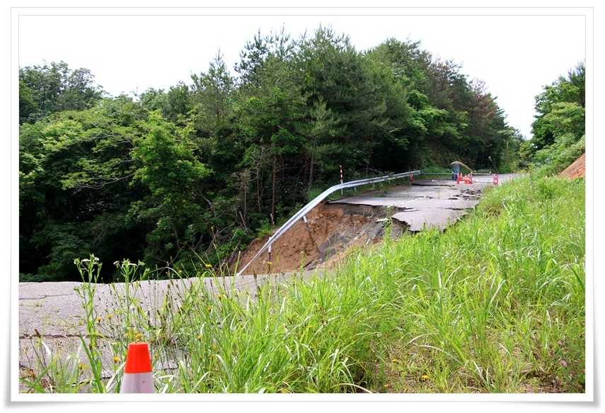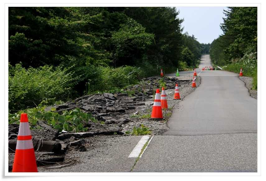 道路の片側は何とか無事なので交互通行ができるようにはなっていたけど・・・・・・