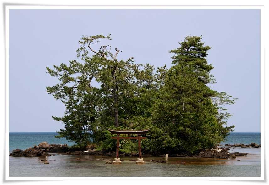 右の方を見ると海の中に島みたいなのが有って、鳥居も見えました
