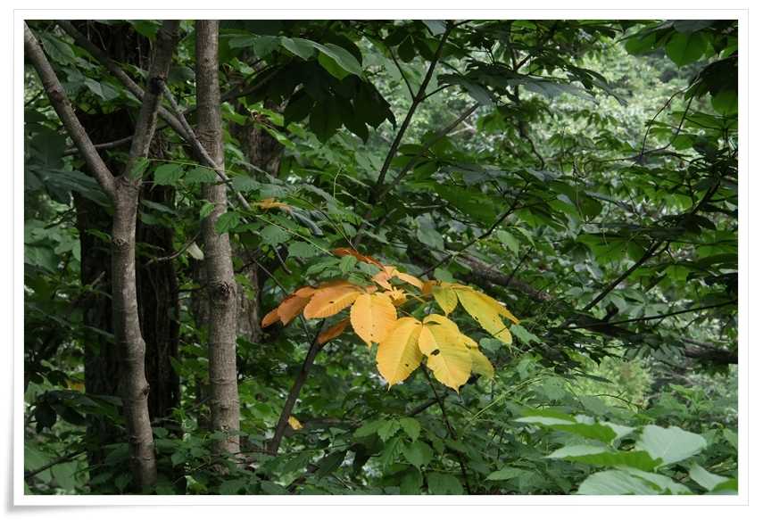 一枝だけのフライング黄葉はいろんな種類の木で起きる現象のようですね