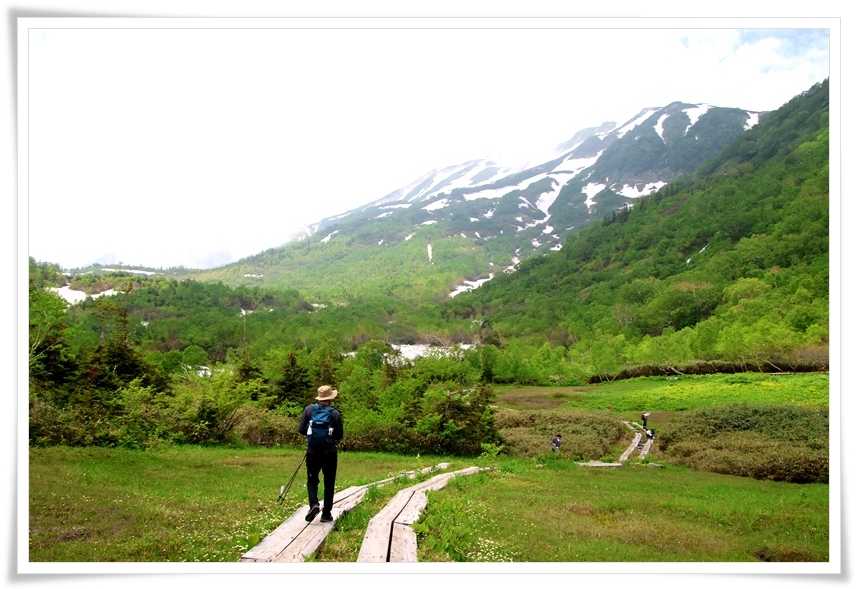 少し行くと残雪は無くなったけど、木道の下はぬかるんだ感じです