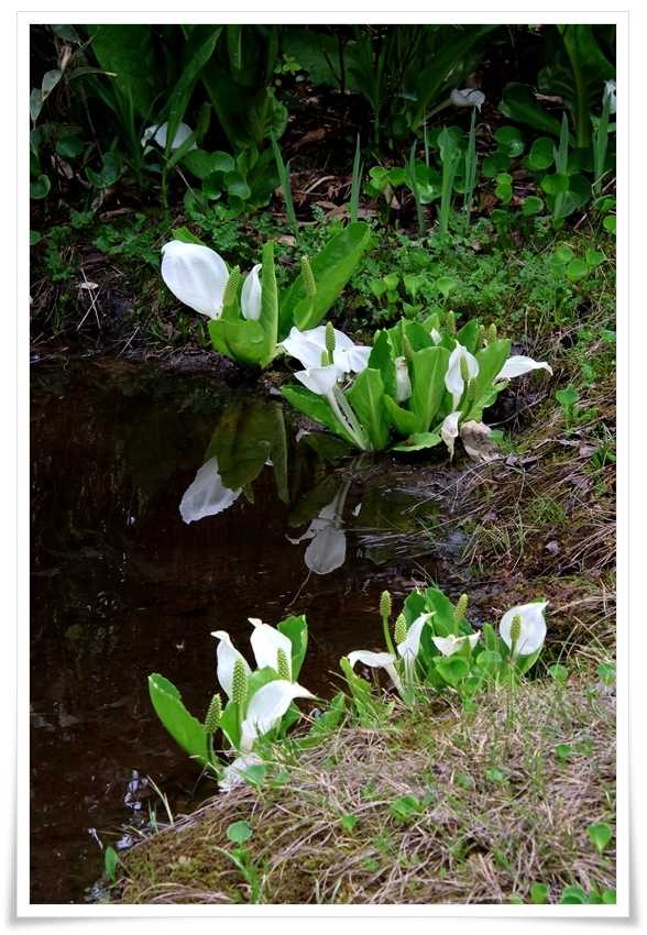 池塘の脇に ​ミズバショウ​ が有ると、水面に映り込んで見えて素敵です