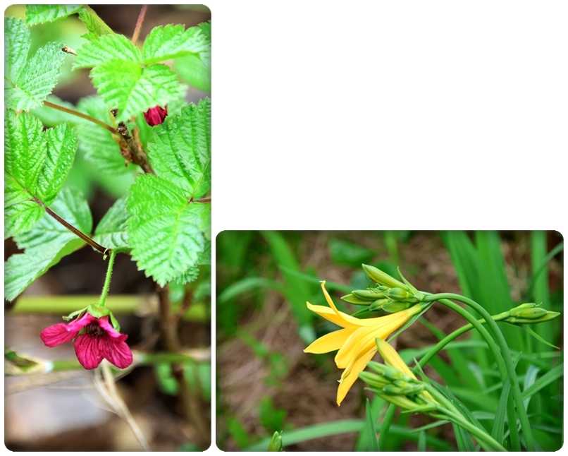 左 : ​ベニバナイチゴ​    右 : ​ニッコウキスゲ​