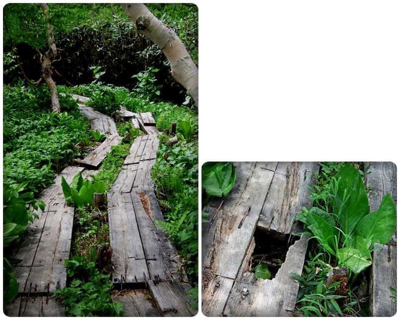このあたりの木道は、古い木道の上に新しい木道が作られています