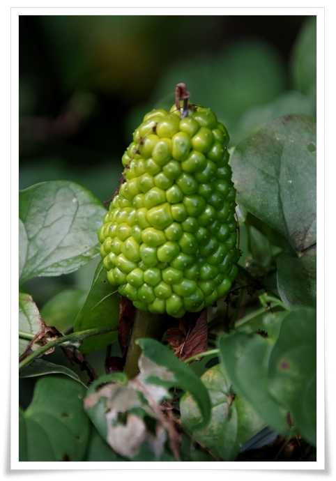 若い実が成ってるけど、熟して黒くなるまでもうしばらくかかるかな