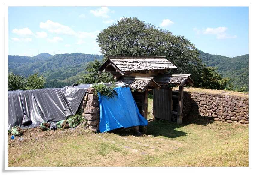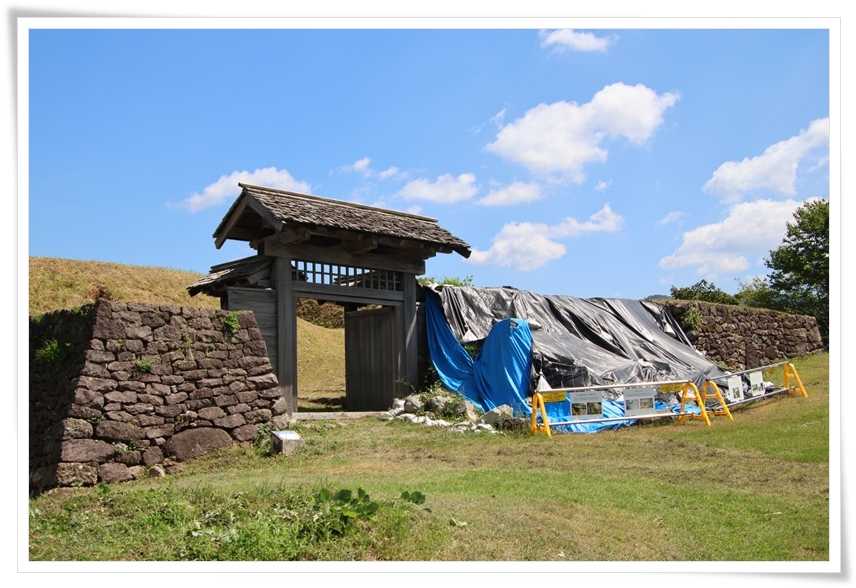 門の横の石垣にはまだブルr-シートが掛けられた状態になっていました