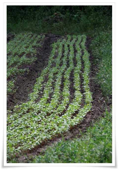 植えて芽が出てるけど、まだ若いので列になっている様子がよく分かりますね