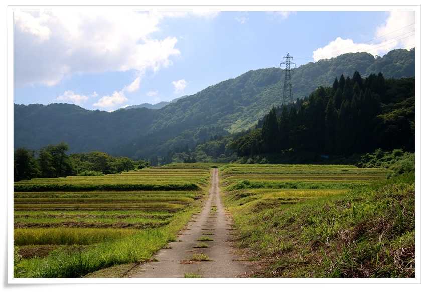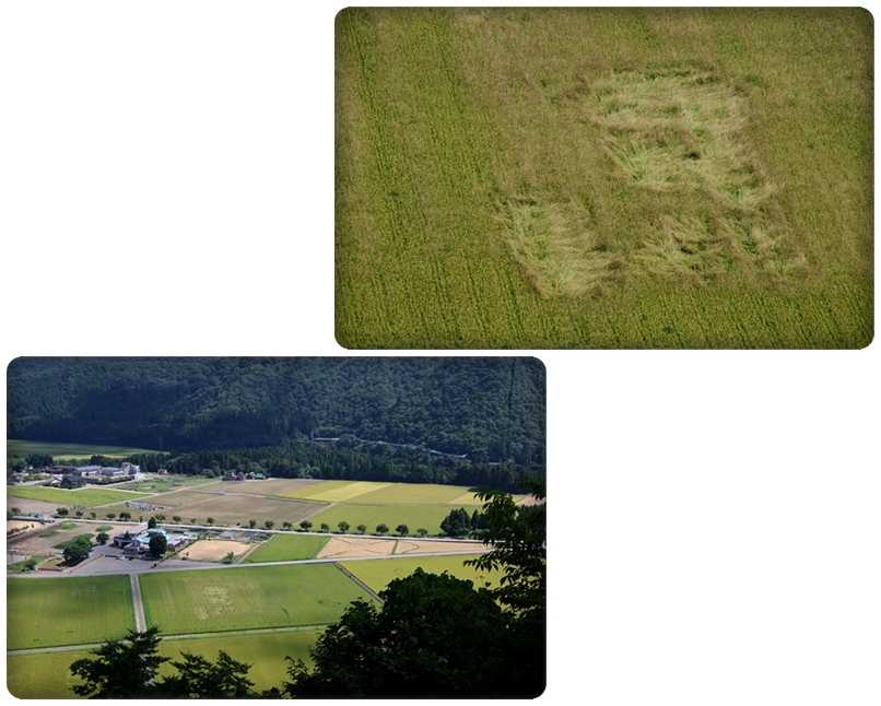 上から下の田んぼを見ると・・・・・一部に稲が倒れたところが見えました