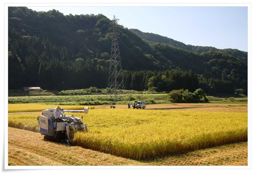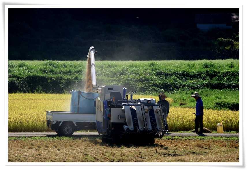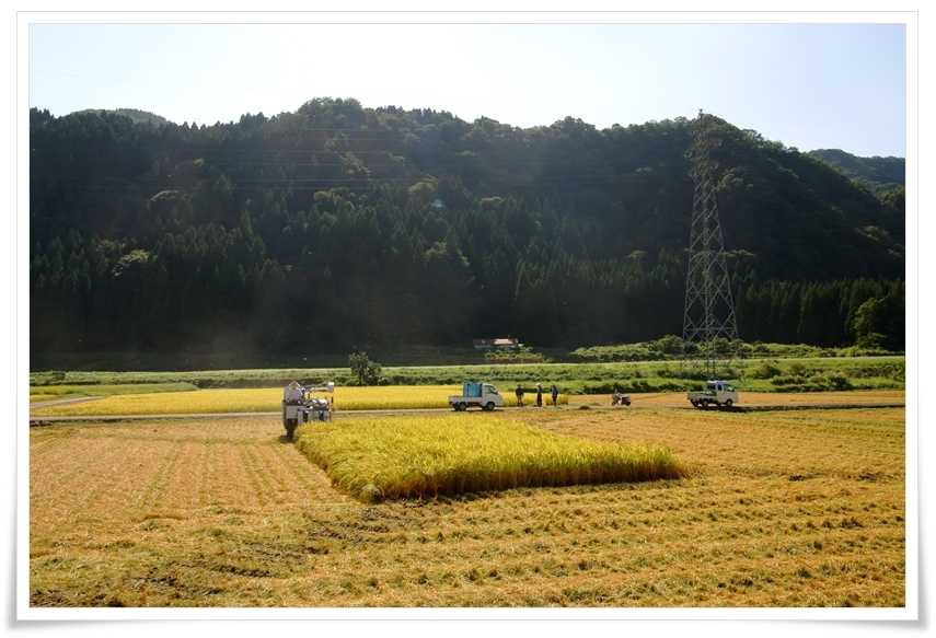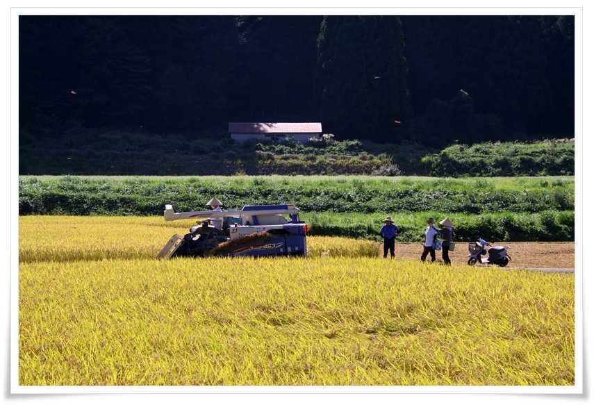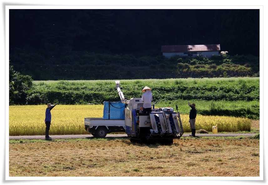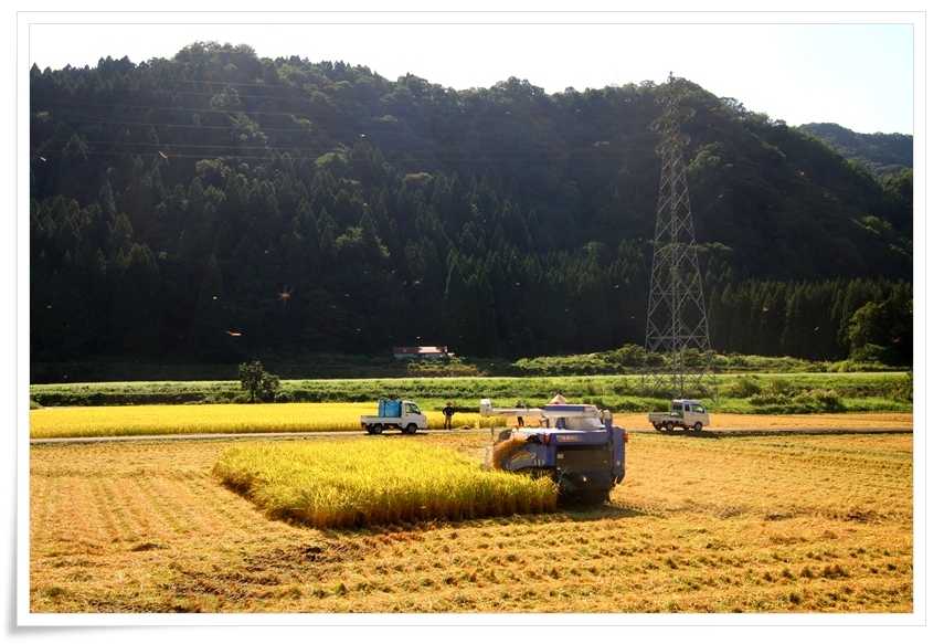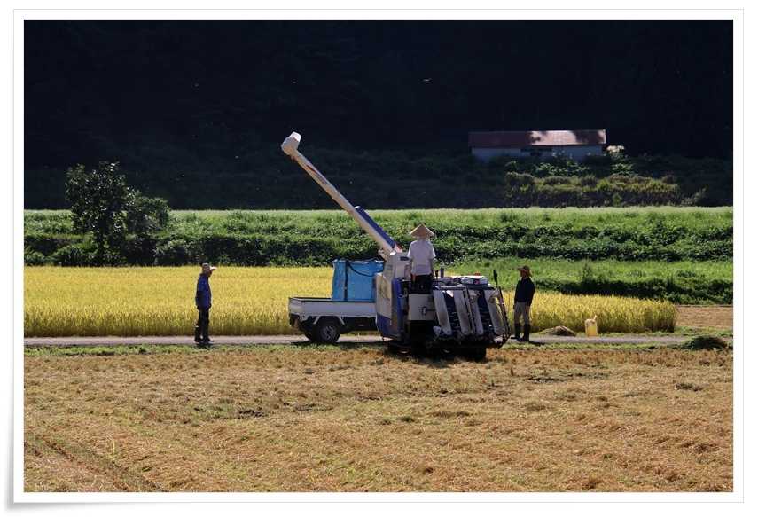 ここまで来る途中にも稲刈りをしているところは有ったんだけど