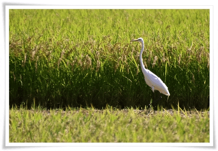 人から少し離れたところで、田んぼに隠れている獲物を探しているようでした