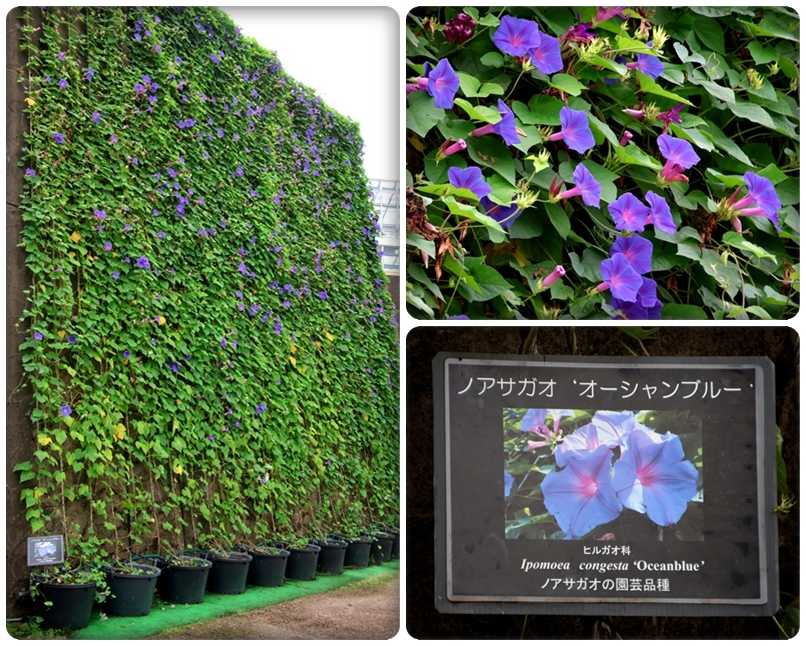 入り口の右側の壁に ノアサガオ オーシャンブルー が花を咲かせていました
