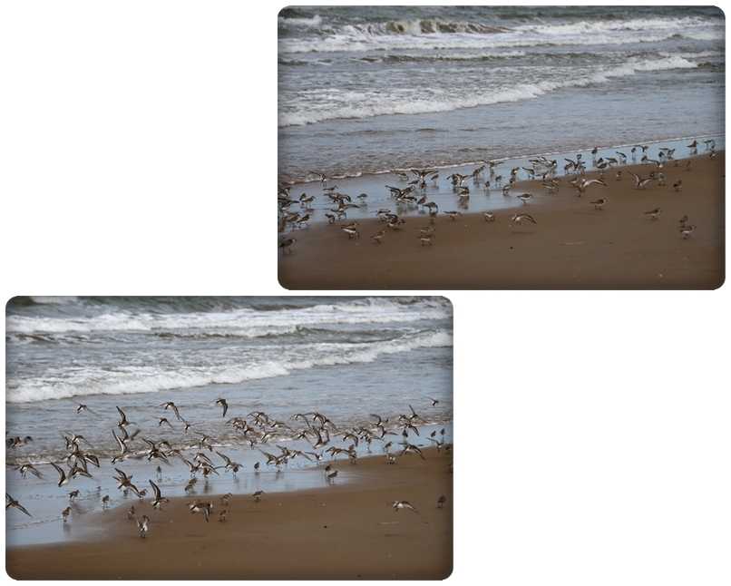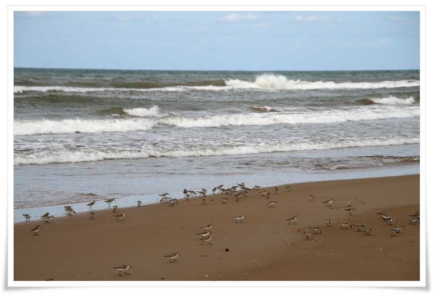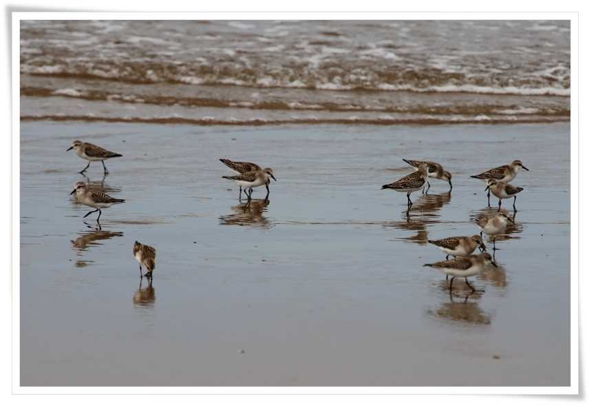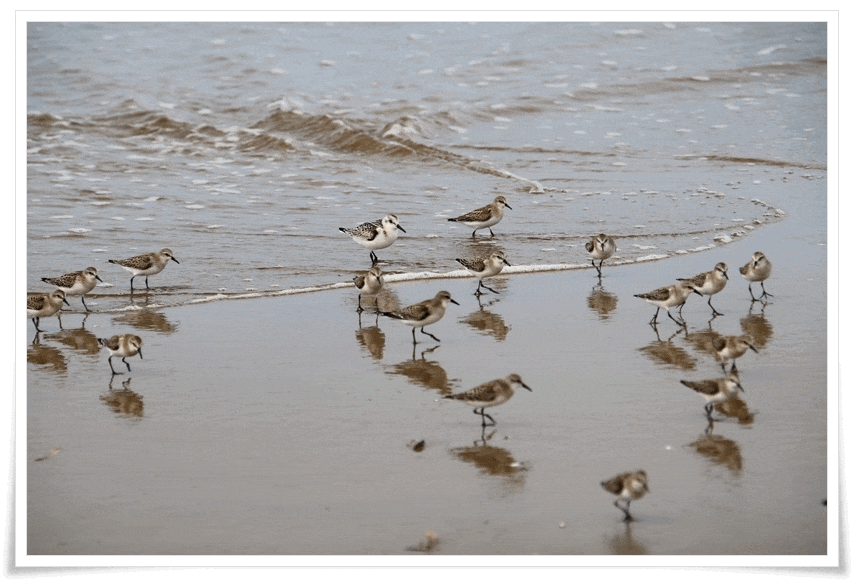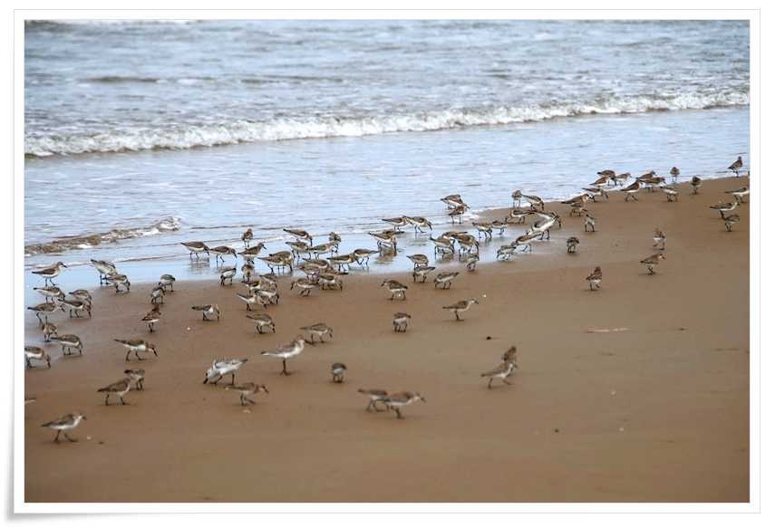 波打ち際のたくさんの小さな鳥たちが居ますよ~