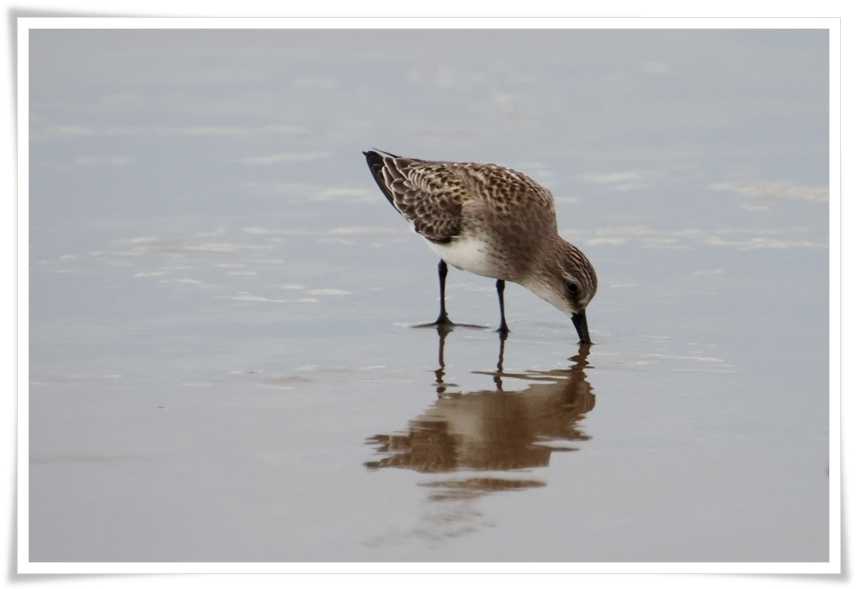 波が引くと波打ち際のギリギリのところまで行って砂浜を突いて餌を探します