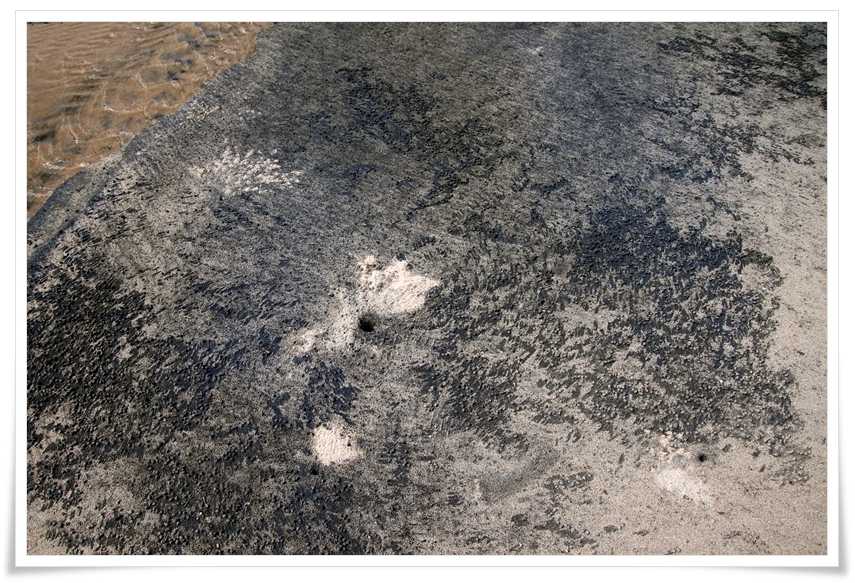 粒々になっているのはカニが巣穴を掘った時に丸めて運び出した砂です