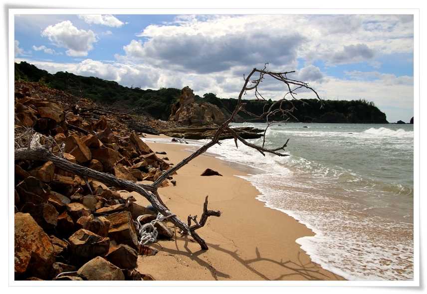 波打ち際から向こうへ行こうとしたら、飛び出している枝が邪魔かな~