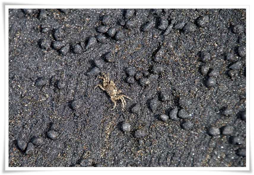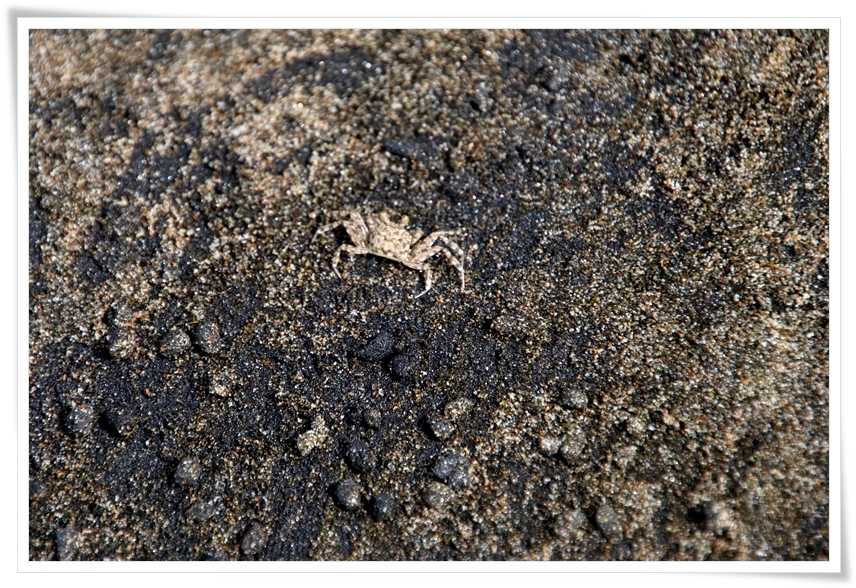 小さなカニは、普通の砂浜だと目立たない保護色と模様のはずだけど